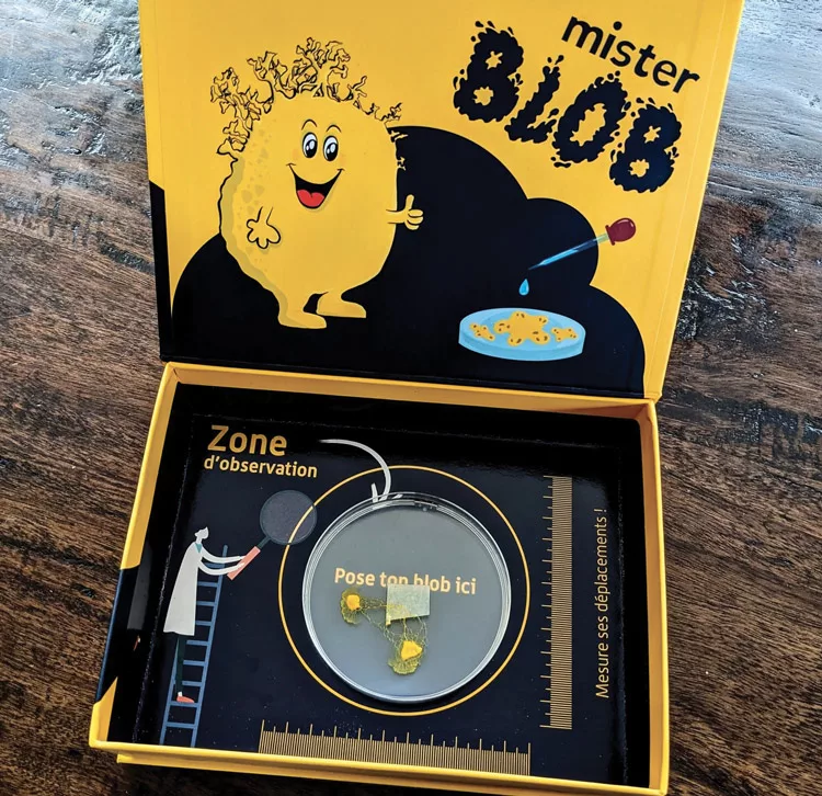 Élever un blob s’adresse autant aux enfants qu’aux adultes. Voilà pourquoi cette boite contenant cet étrange organisme sera un cadeau aussi inattendu que captivant pour tous. Tout est inclus pour réveiller la bestiole que vous devrez ensuite alimenter pour la voir évoluer. Le coffret renferme en effet un guide explicatif, les petits outils d’élevage et de la nourriture.
