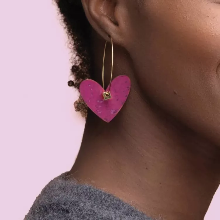 Réalisées avec des matières écoresponsables et éthiques (« cuir » d’ananas, de cactus, de maïs, liège du Portugal…), les boucles d’oreille de cette créatrice française ont la particularité de pouvoir être conçues à votre image ! Car s’il existe une gamme de « prêtes à porter », il est également possible d’imaginer ses propres bijoux en choisissant ses créoles, ses charms et ses breloques.