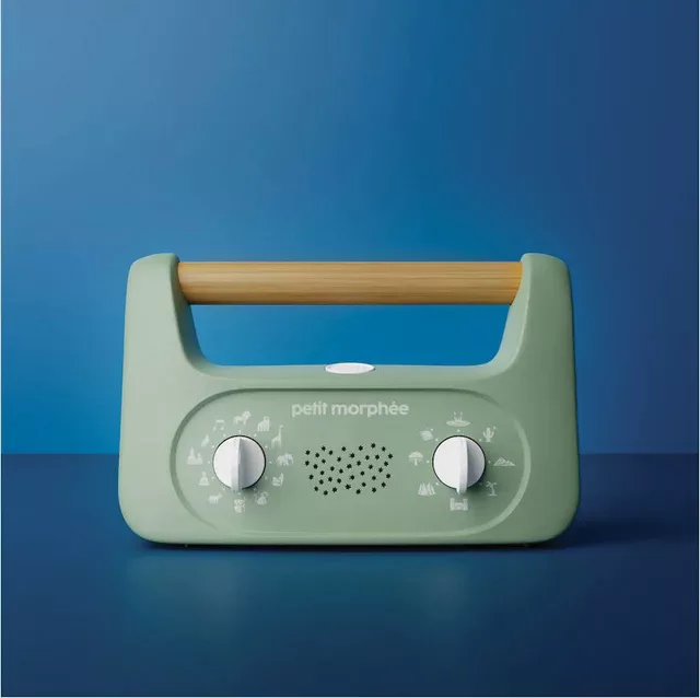 Voici une petite machine, format poste de radio destinée aux enfants de 3 à 10 ans. Ils choisissent eux-mêmes parmi les 192 histoires ou musiques et peuvent aussi régler la minuterie pour un doux moment de calme ou pour s’endormir en mode 100% déconnecté !
