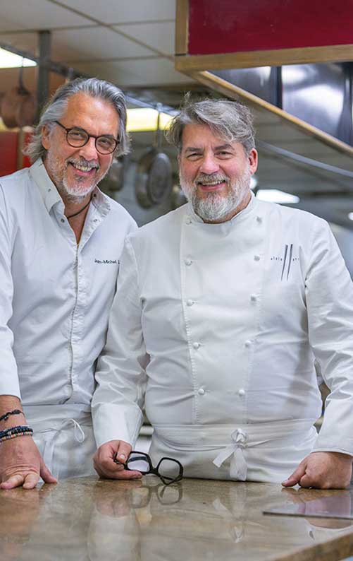 Voilà maintenant près d’une trentaine d’années qu’Alain Llorca régale ses clients azuréens. De ses débuts – déjà étoilés – aux Peintres à Cagnes, puis au Chanteclerc du Negresco ou au Moulin de Mougins jusqu’à « sa » belle maison de La Colle-sur-Loup depuis 2009, Llorca a toujours défendu une cuisine sudiste contemporaine exigeante. Pour lui, la Méditerranée ne s’arrête pas à Marseille : les influences ibériques ou levantines imprègnent souvent ses créations, suivies au cordeau par son frangin Jean-Michel, chef pâtissier d’exception.