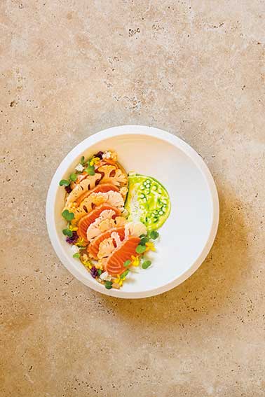 Chaque assiette est pensée comme une symphonie de goûts où rien n’est superflu, surtout pas le légume qui est au centre du plat. La carte inspirée, locavore et authentique, transforme chaque ingrédient en hommage saisonnier : le champignon brun, raviole de Saint-Jacques, crème de crustacés ; les poireaux à la braise, moules et curcuma, condiment d’oursin ; ou encore l’incroyable tarte à l’oignon, émulsion de lard de Colonnata et bouillon pot-au-feu.