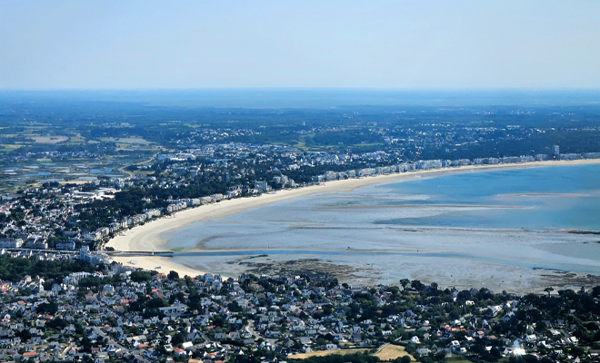 Située en Loire-Atlantique, dans la région Pays de la Loire, la ville compte aujourd’hui quelque 18 000 âmes… et près de dix fois plus en été ! Car dès les beaux jours, ce sont en moyenne 180 000 vacanciers qui affluent pour profiter de ses multiples activités sportives, de ses paysages naturels – entre forêts, parcs et marais salants de Guérande – et surtout, de l’Atlantique. Au sud, l’océan borde l’immense plage qui s’étire sur près de 9km, de Pornichet au Pouliguen, formant l’une des plus longues baies d’Europe : la baie du Pouliguen.